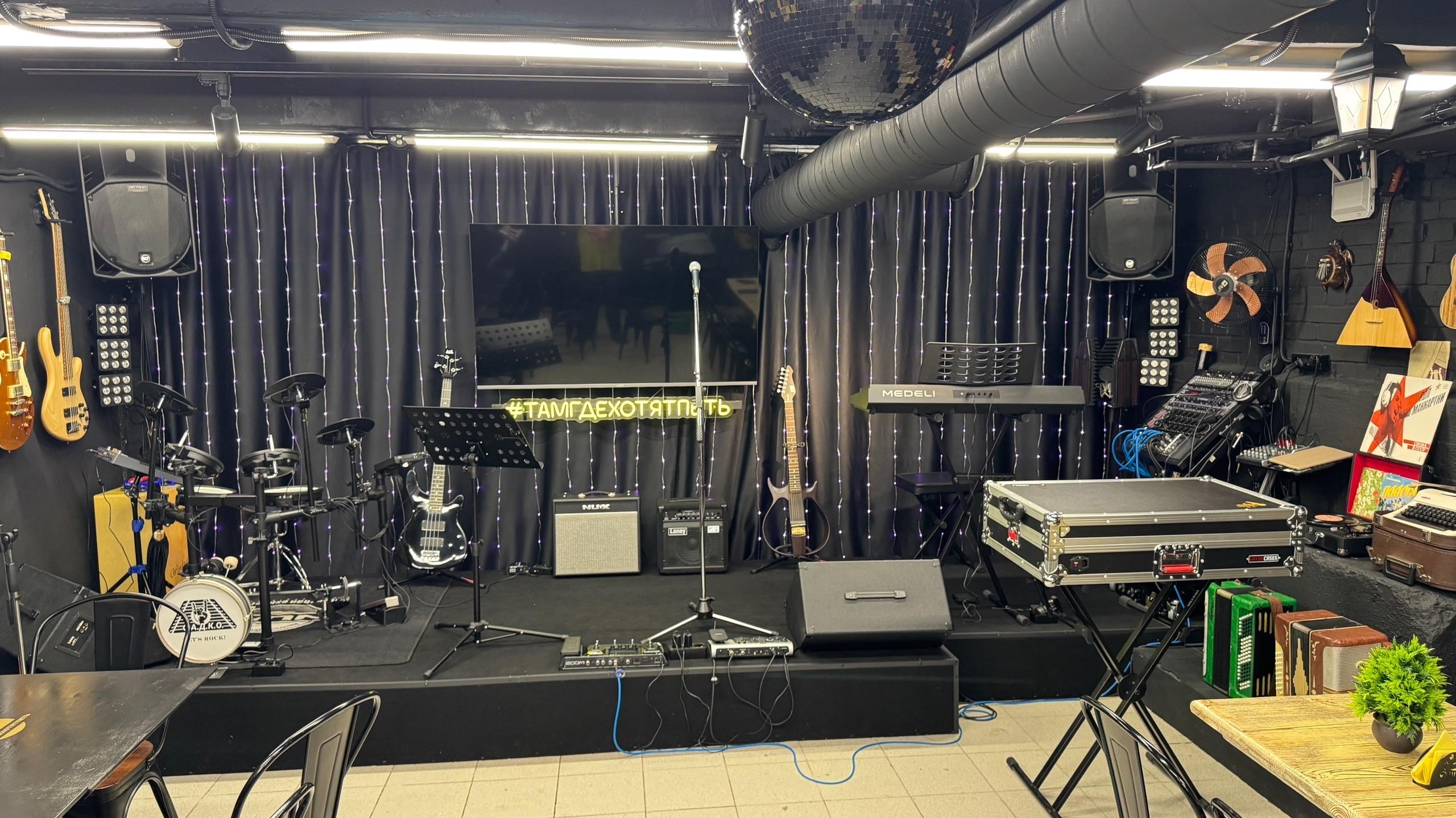 Предлагаем в аренду репетиционное пространство в зале музыкального лофта в стиле 80-х и 90-х годов. Есть все необходимое: -Активная акустическая система RCF ART 715-A - Цифровой микшер Behringer XR18 (с поканальной записью) - Цифровой синтезатор Medeli M331 (61 клавиша) - Цифровой комбоусилитель NUX Mighty-40BT - Гитарный процессор мультиэффектов ZOOM G6 - Басовый комбоусилитель IBANEZ SWX35 - Электронная ударная установка Roland TD-07DMK - Электронный перкуссионный пэд NUX DP 2000 - Вокальный процессор ZOOM V6-SP - Парк микрофонов SHURE и BEHRIGER - мониторинговая линия Behringer - световое оборудование, диско свет - кондиционер, туалеты, чай и кофе По предварительной записи по будням с 17 до 22 часов.